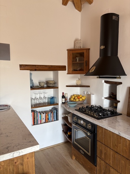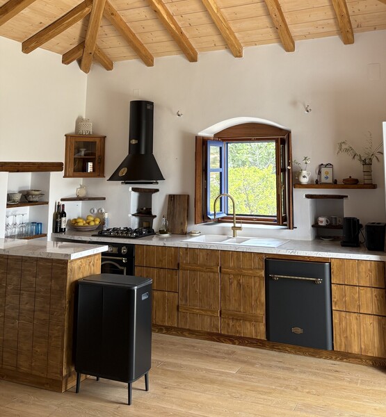 Κουζίνα σε ρουστίκ στιλ με εντιχοιζόμενο φούρνο της Kaiser