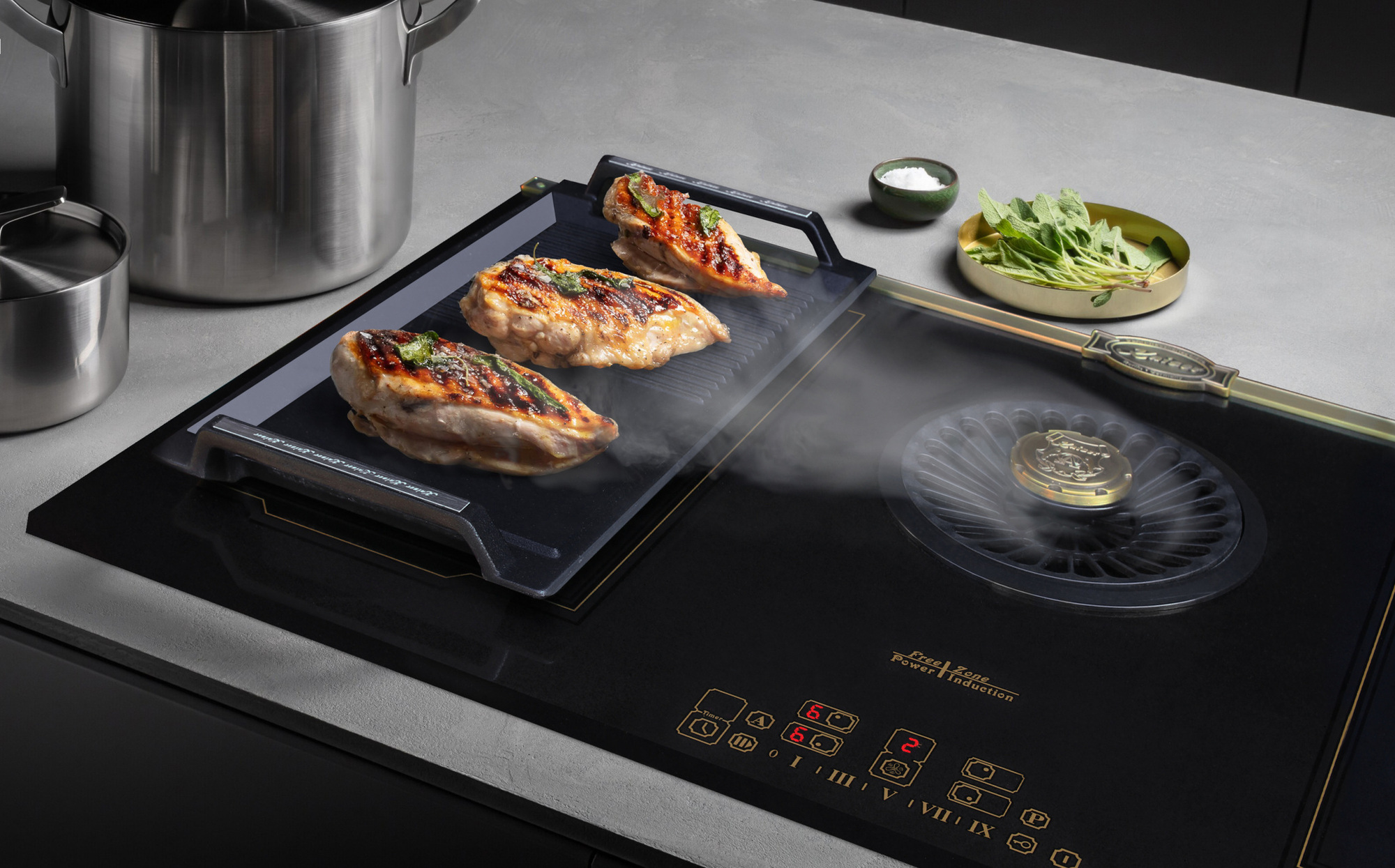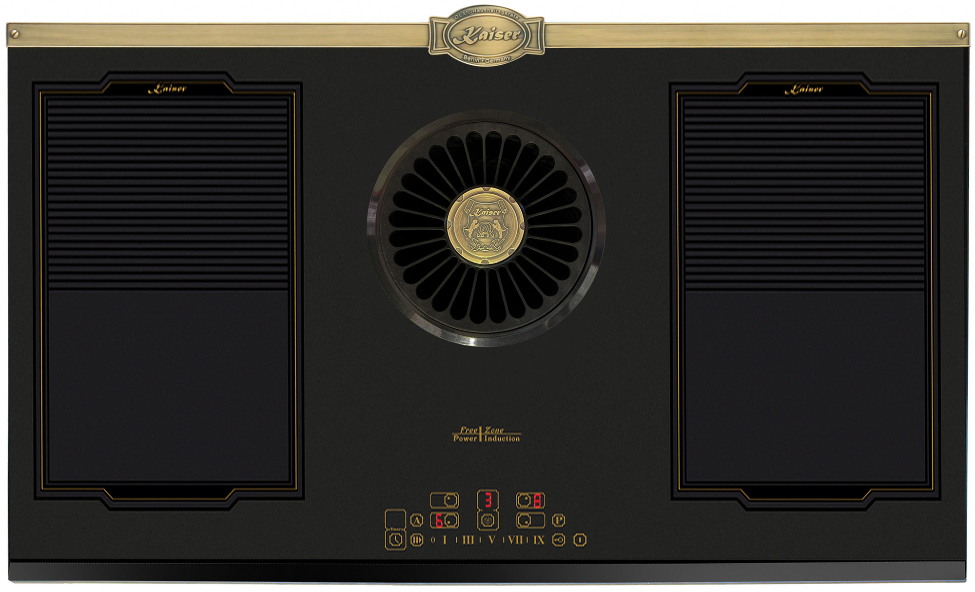 | Ζώνες μαγειρέματος | 4 QuickHeat επαγωγικές ζώνες, 2 × 2 εύκαμπτες FREE-ZONE, όλες με Power |